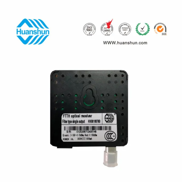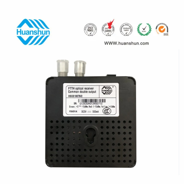 環順的HSGS10076/2光接收機是專為CATV網絡的FTTH 應用而設計的入戶型光接收機。具有結構小巧緊湊、式樣美觀、 應用方便等 特點,在高達1000Mhz的帶寬下能夠提供穩定的輸出電平和優異的性能指標,具有極寬的光功率工作范圍。