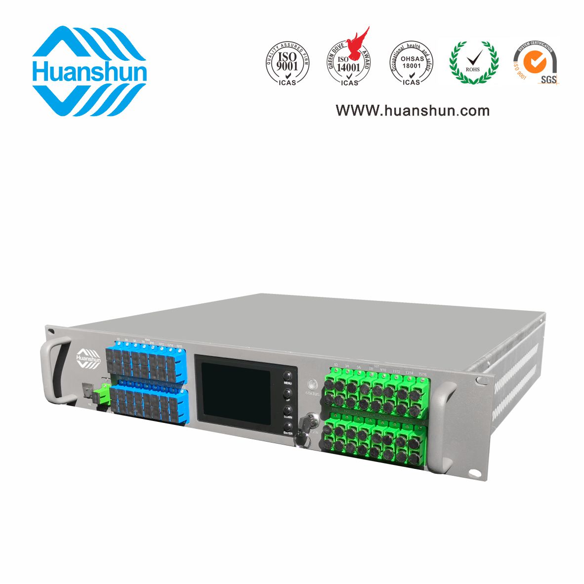 隨著廣電全光網(wǎng)傳輸光纖到戶方案(FTTH)的實(shí)施,當(dāng)EDFA在CATV系統(tǒng)中用作級(jí)聯(lián)放大時(shí),系統(tǒng)C/N會(huì)嚴(yán)重劣化,因此要求EDFA具有高的飽和輸出功率、低的失真,而鉺鐿共摻(EYDFA)雙包層大功率光纖放大器滿足這一需求,以適應(yīng)當(dāng)前FTTH和FTTB網(wǎng)絡(luò)的需求。FTTH除傳輸1550nm CATV光信號(hào)的同時(shí),還需E/GPON DATA光信號(hào)傳輸,合波型大功率光纖放大器是在EYDFA的基礎(chǔ)上結(jié)合FWDM器件,有機(jī)地把1550波段CATV光信號(hào)與1310/1490nm PON DATA光信號(hào)進(jìn)行合波傳輸。