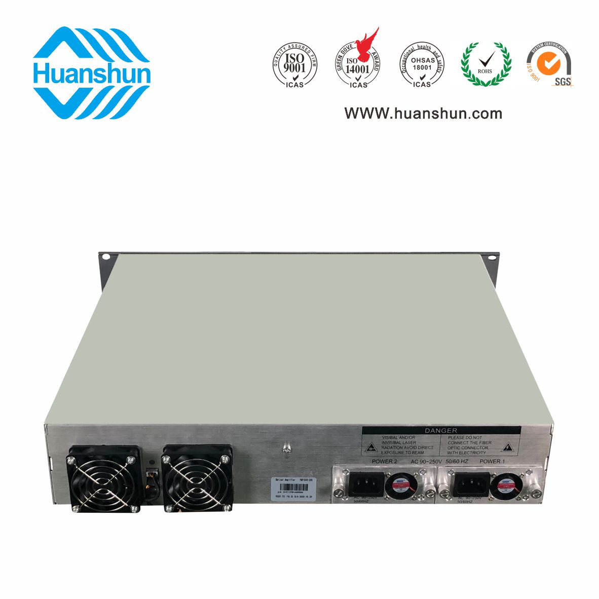 大功率光纖放大器EYDFA | YGF1532-16C | 19 " 2U/3U標(biāo)準(zhǔn)機(jī)箱,-5 ~ +10 d Bm輸入,32路標(biāo)稱規(guī)格(16、17、18、19、20、21、22、23dBm)放大輸出,并支持下調(diào)-2dB,安全連接模式,NF ≤ 5dB(0dBm時(shí));內(nèi)置FWDM合波器,插播損耗 ≤ 1dB;雙模塊熱插撥電源,AC90 ~ 255V或DC-48V供電,RJ45標(biāo)準(zhǔn)網(wǎng)管(支持SNMP、WEB) |