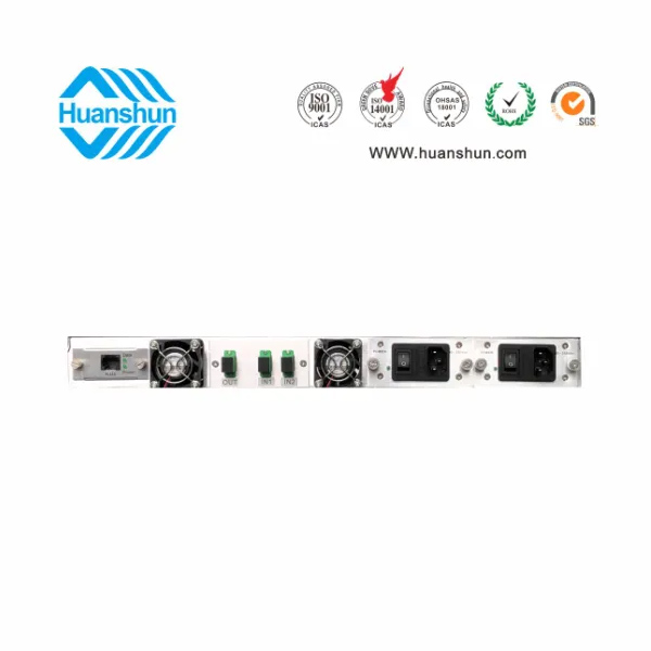 EDFA | YGF1518T-C | 主波-5 ~ +10 d Bm輸入,插播按需求功率配置,合波放大標稱規格(18、19、20、21)輸出,并支持上調+0.5dB,下調-3dB,NF ≤ 5dB(0dBm時);1U標準機箱,雙模塊熱插撥電源,AC90 ~ 255V或DC-48V供電,RJ45標準網管(支持SNMP、WEB) |