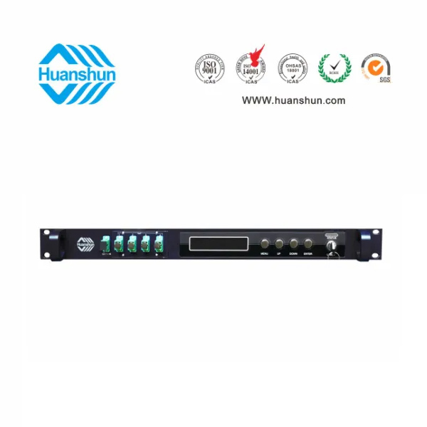 大功率光纖放大器 | YGF1504-16 | 19 " 1U標(biāo)準(zhǔn)機箱,-5 ~ +10 d Bm輸入,4路標(biāo)稱規(guī)格(16、17、18、19、20、21、22dBm)放大輸出,并支持下調(diào)-2dB,安全連接模式,NF ≤ 5dB(0dBm時);內(nèi)置FWDM合波器,插播損耗 ≤ 1dB;雙模塊熱插撥電源,AC90 ~ 255V或DC-48V供電,RJ45標(biāo)準(zhǔn)網(wǎng)管(支持SNMP、WEB) |