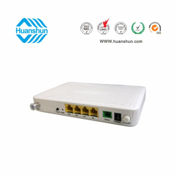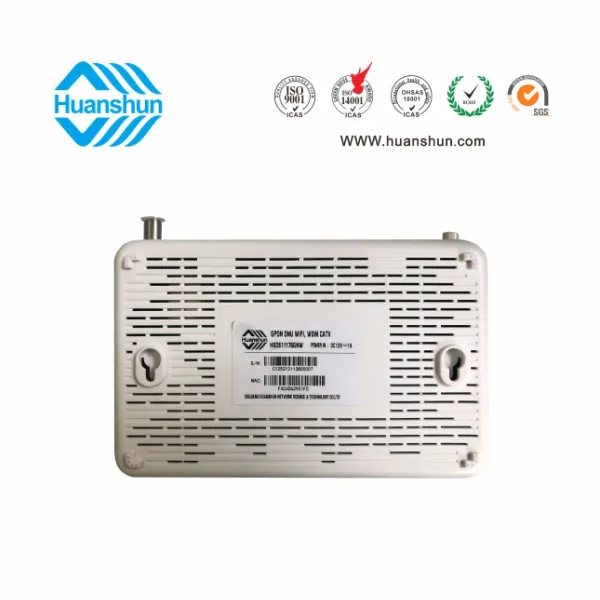 HSOS11176GNW | xPON ONU, PON端口接入,1GE+3FE網絡接口,2*2 2.4G WIFI(內置天線300m),CATV1540~1565nm -5~-15dBm inport/RFMD76dBuv恒定輸出,網絡管理監控光接收功率,RF輸出電平,RF on / off,通過內置WDM-PON xPON1310/1490nm1~4dBmTX,-28dBmRX連接到xEPON;外置90~255V-12V 1A電源適配器 | |