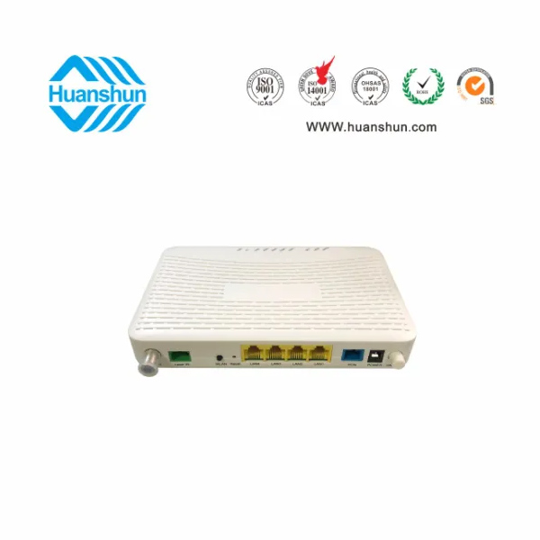 HSOS21176GNW | xPON ONU, PON端口接入,1GE+3FE網絡接口,2*2 2.4G WIFI(內置天線300m,CATV1290~1565nm -5~-15dBm inport/RFMD76dBuv恒定輸出,網絡管理監控光接收功率,RF輸出電平,RF on / off. xPON1310/1490nm1~4dBmTX,-28dBmRX;外置90~255V-12V 1A電源適配器 | |