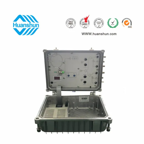 YGS86/10050R野外型四輸出光接收機(jī)是適應(yīng)NGB網(wǎng)絡(luò)構(gòu)架EPON+EOC而設(shè)計(jì)的低光功率光接收產(chǎn)品。本機(jī)選用光電一體化模塊或高靈敏度光電管,低噪聲前置砷化鎵放大芯片,末級采用英國OEI砷化鎵功率倍增放大模塊,最大輸出電平可達(dá)4×104/4×108dBuV(YGS10040R);本機(jī)還配置高精度避雷保護(hù)開關(guān)電源,光控AGC自動輸出電平控制,光接收功率LED數(shù)碼顯示,EOC插入器(數(shù)據(jù)通道5~65MHz)。由于主要器材性能優(yōu)越,加上精心設(shè)計(jì)的電路配合,從而保證了性能指標(biāo)高,可靠性好。同時,為解決運(yùn)營商設(shè)備管理和雙向網(wǎng)改造之便,本機(jī)增加了可選型網(wǎng)管應(yīng)答器有EOC雙工器,通過以太網(wǎng)絡(luò)可實(shí)現(xiàn)HFC網(wǎng)管系統(tǒng)監(jiān)控和EOC插入功能。