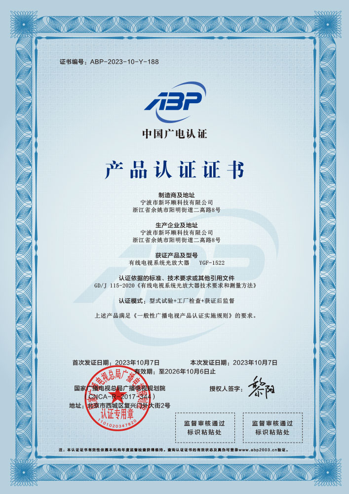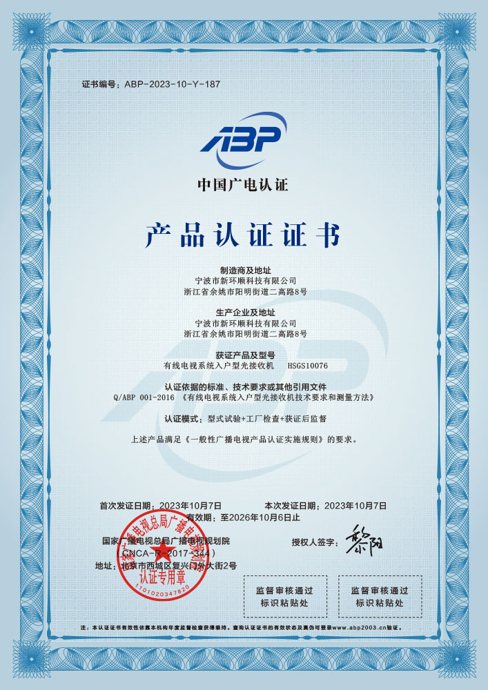 有線電視系統(tǒng)調(diào)幅光接收機認(rèn)證